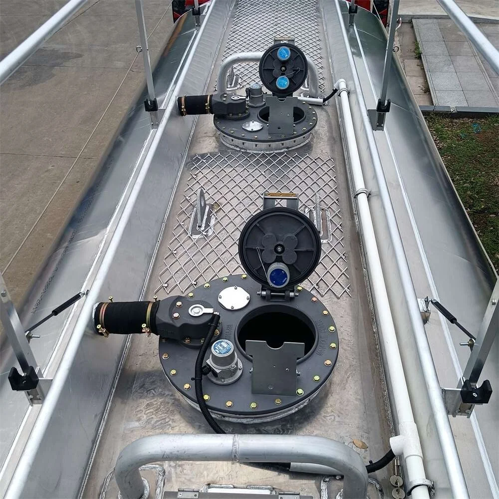 Carbon steel top loading configuration: effective tank volume :15-30 cubic meters, Q235B plate, 5mm thick cylinder, 5.75mm thick head, 5mm thick bulkhead, single tank with 2 tank ports, a set of European standard system, 1 submarine valve with voice alarm device with 80/60 pump, rear ladder, manual guardrail, toolbox, rear bumper, side guardrail, according to the new standard, Other manufacturers standards, gasoline, diesel and other fuel medium tank inspection report. Aluminum alloy top configuration: effective volume of oil tank :15-30 cubic meters, 5182 aluminum alloy plate, 6 thick tank, 6 thick head, 6 thick bulkhead, single bin, tank top, European standard port, 1 intelligent submarine valve, 1 set of lower charge (discharge valve, oil and steam recovery, anti-overflow probe, anti-static coil), with 80-60 special oil pump (pump can be pumped in and out), rear ladder, Manual guardrail, toolbox, rear bumper, side guardrail are aluminum alloy. The side guardrail is made of aluminum alloy sheet, according to the new standard and other manufacturers' standards, the diesel medium tank inspection report. Optional: Zhengxing large flow fuel refueling machine, 15m thick drum and gun, multi-bin and pipeline system. |