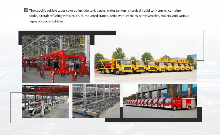 Upper standard configuration (steel liner plastic): in line with GB18564.1-2019 standard; L4BH design code; positive round steel and plastic tank; Q235 carbon steel + PE lining; polyethylene material lining; lining thickness of 16mm; carbon steel tank; rotary head; through the silo; double-layer bulkheads *2; top full plastic tank mouth *2; stainless steel vacuum valve *1; DN100 steel lined with plastic tee pipe *1; DN100 stainless steel PTFE submarine valve *1; submarine valve alarm device; rear tail left and right self-flowing DN80 PTFE ball valves *2; aluminium alloy movable guardrail; rear ladder, tool box, rear bumper, side protection are all steel parts; plastic export box *2; tank shot blasting; tank inspection report; quality assurance certificate; Upper standard configuration (stainless steel, carbon steel): in line with GB18564.1-2019 standard; L4BH design code; positive round tank; SUS304, SUS316 or Q235 carbon steel material to make the tank; the thickness of the barrel, head, bulkhead 5mm, 6mm, 5mm; spinning head; through the silo; bulkhead * 2; tank top stainless steel or carbon steel tank mouth * 2; stainless steel Vacuum valve*1; DN100 stainless steel or carbon steel tee pipe*1; DN100 stainless steel or carbon steel submarine valve*1; submarine valve alarm device; rear tail left and right self-flowing DN80 stainless steel or carbon steel ball valves*2; aluminium alloy movable guardrail; rear ladder, tool box, rear bumper, side protection are all steel parts; plastic export box*2; tank shot peening; tank inspection report; quality assurance certificate; Upper optional configuration: optional shape according to the announcement; steel-plastic tank mouth; safety valve; rupture disc; divided into multiple compartments; plastic lining thickness of 18mm-20mm; aluminium alloy accessories; motor chemical pump or truck-mounted chemical pump; body, tank paint colour; |