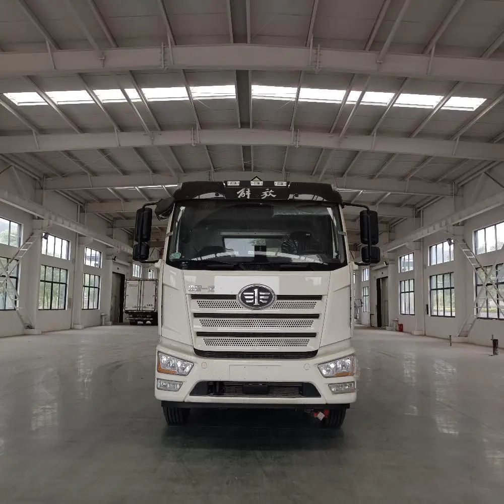 Chassis model CA1185PK2L2BE6A8I Class II China First Automobile Group Corporation, engine model: CA6DLD-22E6, Dragon V2.0 semi-high-roof semi-floating cab, Xichai CA6DLD-22F6, Shaanxiang 8JS85C, 435 upgraded punched-welded axle (speed ratio 4.444), 237*75*7, 275/80R22.5- 18PR tier, special chassis for hazardous chemical truck tanker, leaf spring 7/2+-, 2 airbags with domestic ECAS, electronically controlled airbag suspension, 200L aluminium alloy fuel tank, ETV valve, aluminium alloy gas cylinder, multi-state switch, Camel 150Ah battery, electric lift, central locking, cruise control, air-conditioning, electric doors and windows, front lower protection, Beidou+GPRS car recorder, front disc and rear wedge Front disc and rear wedge brake, front axle tyre burst emergency safety device. Speed limit 79KM/H. Exhaust tailpipe forward, exhaust spark extinguisher, with static electricity towing belt, imported EBS + ESC + LDWS + FCW. front axle with tyre pressure monitoring, continuous work pickup and control mechanism with front axle transverse stabilizer bar, U-type rear processor |