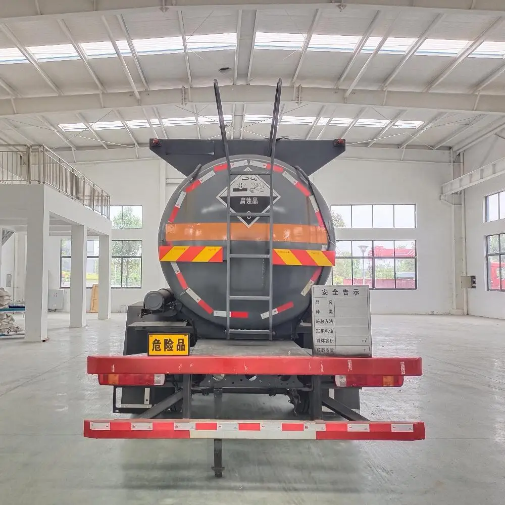 Upper standard configuration (stainless steel, carbon steel): in line with GB18564.1-2019 standard; L4BH design code; round tank; SUS304, SUS316 or Q235 carbon steel material production tank; barrel, head, bulkhead thickness of 5mm, 6mm, 5mm; spinning head; through the warehouse; bulkhead * 2; tank top stainless steel or carbon steel tank mouth * 2; stainless steel Vacuum valve*1; DN100 stainless steel or carbon steel tee pipe*1; DN100 stainless steel or carbon steel submarine valve*1; submarine valve alarm device; left and right self-flowing DN80 stainless steel or carbon steel ball valves at the rear end*2; aluminium alloy movable guardrail; rear ladder, tool box, rear bumper, side protection are all steel parts; plastic export box*2; tank shot blasting; tank inspection report; quality assurance certificate; Standard configuration of top loading (steel liner plastic): conform to GB18564.1-2019 standard; L4BH design code; positive round steel and plastic tank; Q235 carbon steel + PE liner plastic; polyethylene material liner plastic; liner plastic thickness of 16mm; carbon steel tank; rotary closure head; through the silo; double-layer bulkhead *2; top full plastic tank mouth *2; stainless steel vacuum valve *1; DN100 steel liner plastic tee pipe *1; DN100 stainless steel PTFE submarine valve *1; submarine valve alarm device; rear tail left and right self-flowing DN80 PTFE ball valves *2; aluminium alloy movable guardrail; rear ladder, tool box, rear bumper, side protection are all steel parts; plastic export box *2; tank shot blasting; tank inspection report; quality assurance certificate; Upper optional configuration: optional shape according to the announcement; steel-plastic tank mouth; safety valve; rupture disc; divided into multiple compartments; plastic lining thickness of 18mm-20mm; aluminium alloy accessories; liquid level meter; motor chemical pump or truck-mounted chemical pump; body and tank paint colour; |